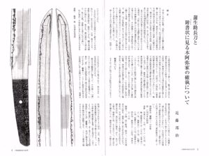 近藤邦治氏論文「蒲生助長刀附書状に見る本阿弥家の確執について」 ※「刀剣美術(第625号)」2009年2月
