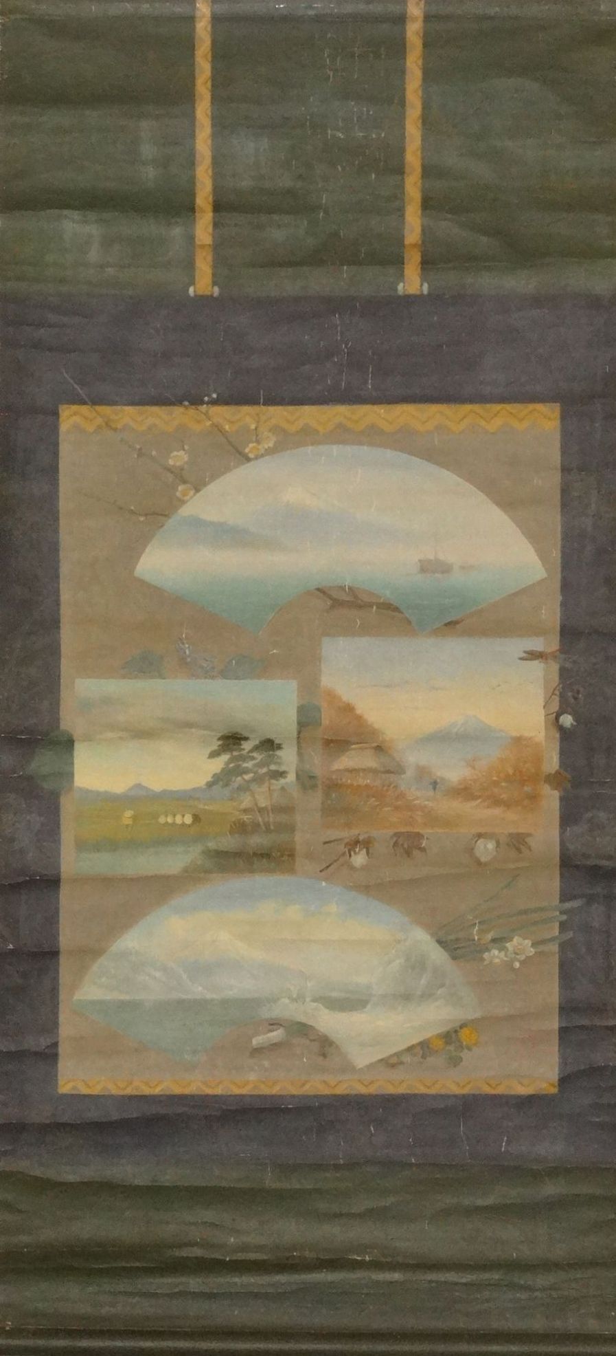 しかし、図画教育者としての実用的・軍事的な画題ではなく、庶民の美意識にも馴染み深い画題である「富士山の四季山水図」であることは、この作品が「図画」というよりも「鑑賞画」として――つまり「技術」というよりも「美術」として――描かれていることを意味している。そのことは、この作品が「扇面画」や「掛軸」という伝統的な絵画様式を踏襲していることからも分かる。