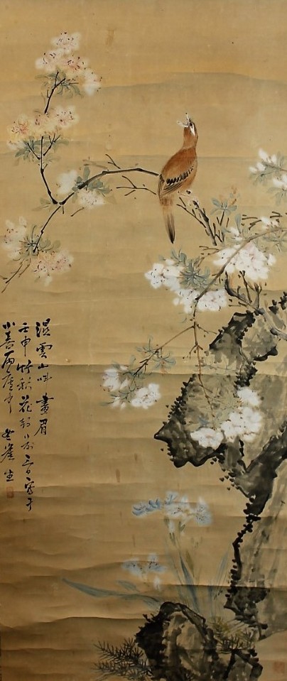 ちなみに、冬崖の《温雲山叫畫眉》は「壬申」から1872(明治5)年の作と分かる。この年、冬崖は西洋画法の第一人者として陸軍兵学寮に出仕しているが、生来的な気質はこの作品が示すように南画家だったようである。