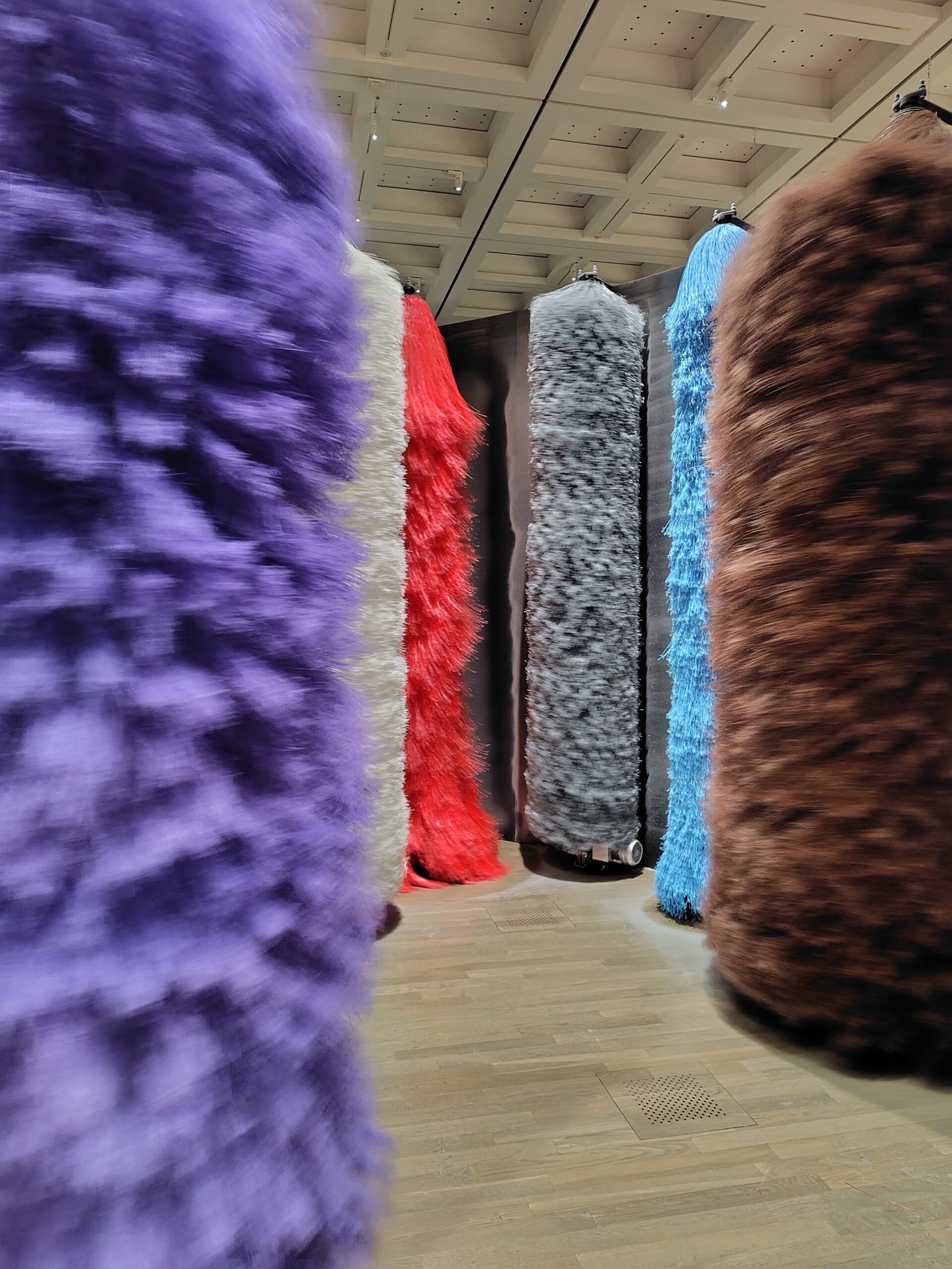 漂っているのは、「虚無」でしょうね。珍奇ではあるけど、そこまで深さがあるとは思えない作品だからです。ニューマンの絵の前に立てば、己の心身に有無を言わせず迫ってくる「神性」「崇高性」が確かに感じられます。しかし、洗車ブラシの場合、その音と動きは確かに面白いのですが、ニューマンと比較するのはさすがに無理筋です。まぁ、ハイブランドというものは、往々にして、自身の作品やヒストリーを過大評価しすぎる部分があるので、本展の珍奇なオブジェもご愛敬の一つということにいたしましょうか。