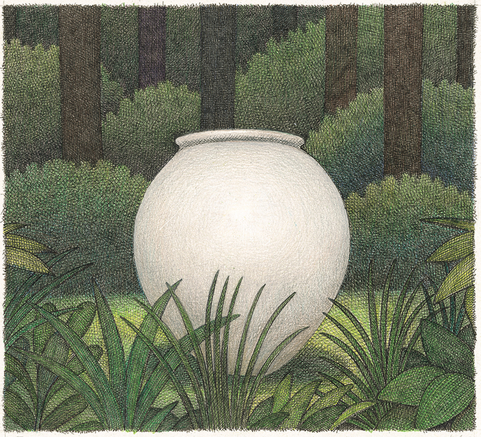 深呼吸を繰り返しているように見える巨大な壺。生への意思が充満している