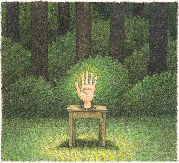 とはいえ、小林さんも筆者も、いつか本当の「さようなら」を周りに告げる日がやってくるわけです。筆者が、この絵本で一番、好きな絵は、書名を象徴するような「机上の手首」です。掌をひらひら振る仕草ーーそれは、さようなら(彼岸)とこんにちは(此岸)との境界線で吹き渡る一陣の風のようなものではないでしょうか?