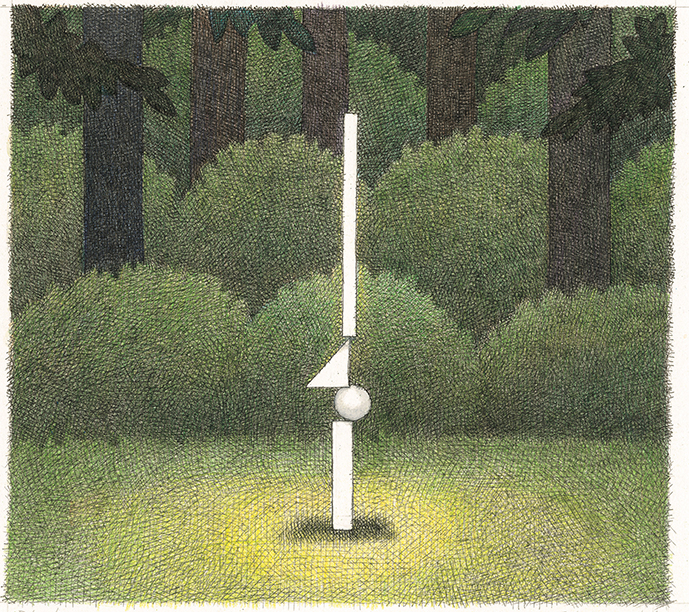 読者(小林)は森の中を経巡っていくのですが、その道のりには、過去の小林作品でよく見かけた者たちが出現します。カエル、壺、焚火、積み木などなど、です。興味深いのは、サイズ感が現実とはかなり異なるという点です。どれも、かなり大きく描かれているのです。「こんなに大きなカエルは実世界には存在しないだろう」というくらい、大きいです。つまり、小林が描いているのは、現実の「カエル」「壺」ではなく、あくまでもイデアとしてのカエルや壺を描いていると筆者は理解しました。