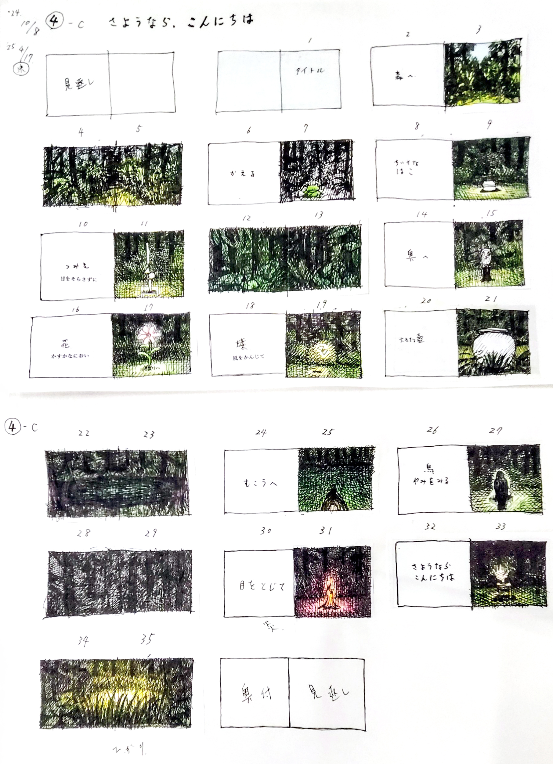 絵本の設計図となる「台割」が画廊内に展示されていましたが、小林さんが実によく考えて作ったものであることが即座に理解できました。大袈裟に言えば、台割そのものが一つの作品のようで、筆者はかなり長い時間、しかも何度も、この台割を鑑賞してしまいました。