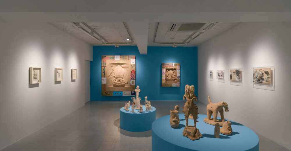 また、2021年に筆者がキュレーションした現代京都藝苑2021「悲とアニマⅡ~いのちの帰趨~」展では、入江には第一会場の両足院(建仁寺塔頭)に《青面金剛困籠奈ダスト》(2021年)を出品してもらった。この作品は、2020年の新型コロナ禍を受けて、元々は疫病を流行らせる鬼でありながら疫病から人を守る神となった青面金剛にマスクを持たせて「消しカスアート」として作品化したものである。