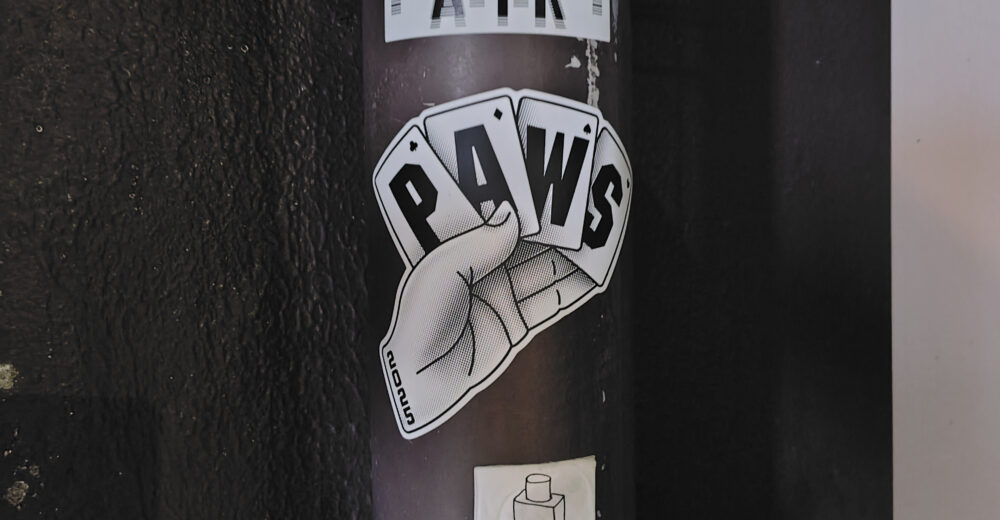 奥野ビルはご自分の目で見て欲しいので、写真は掲載しません。代わりに奥野ビルのすぐ近くで見つけたステッカーをご覧ください