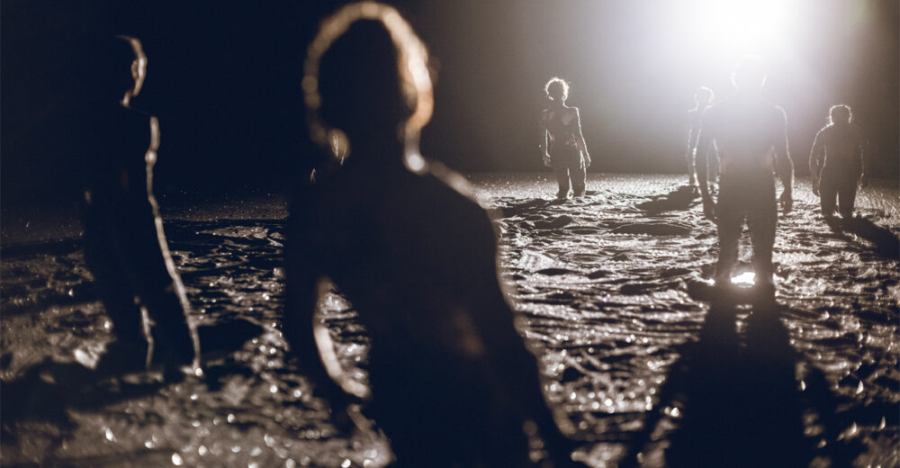 また、この倒れそうで倒れないダンサー達のパフォーマンスは、東日本大震災の被災地である宮城県石巻市の海岸でのワークショップが元になっているという。