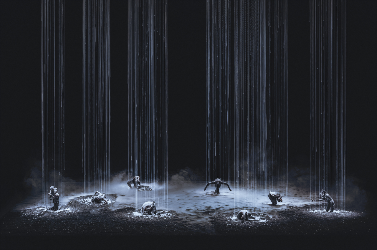 世界中から招集された男女混合の実力派のダンサー達は、個々に磨き抜かれた卓越した身体能力を発揮する。苦悶と煩悶。鳴動と躍動。一見、それぞれ自由闊達に舞い踊りながら、互いに複雑に絡み合い、全体としてその呼応は一糸乱れない。