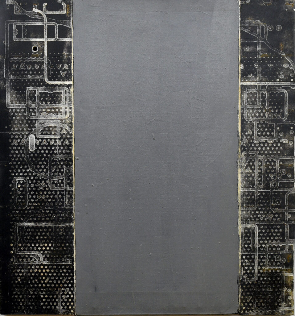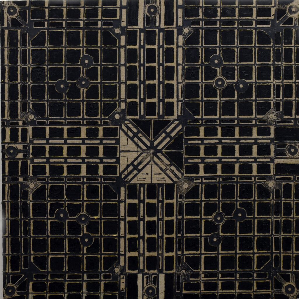 こうした即物性の強い工業的な記号表象により背景の工業化社会全体を暗示する作風は、《黒の構成 B》(2016年)(図1)、《Black G》(2016年)(図2)、《Z》(2016年)(図3)、《黒》(2019年)(図4)等に如実に窺える。
