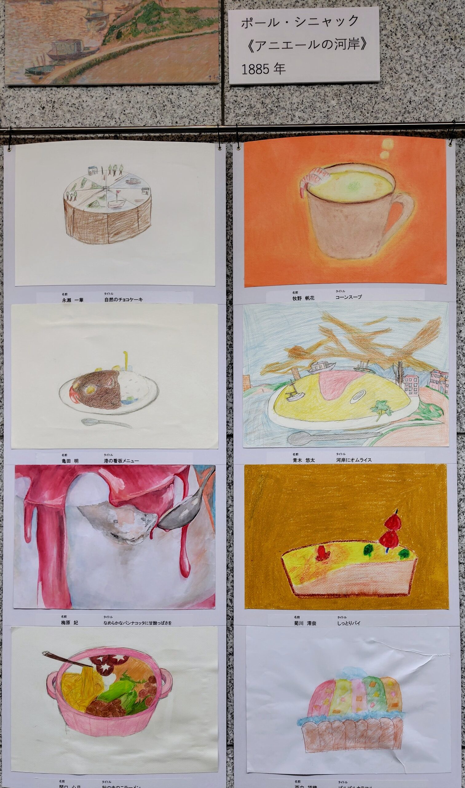 ポール・シニャック「アニエールの河岸」に触発されて、子どもたちが描いた作品群