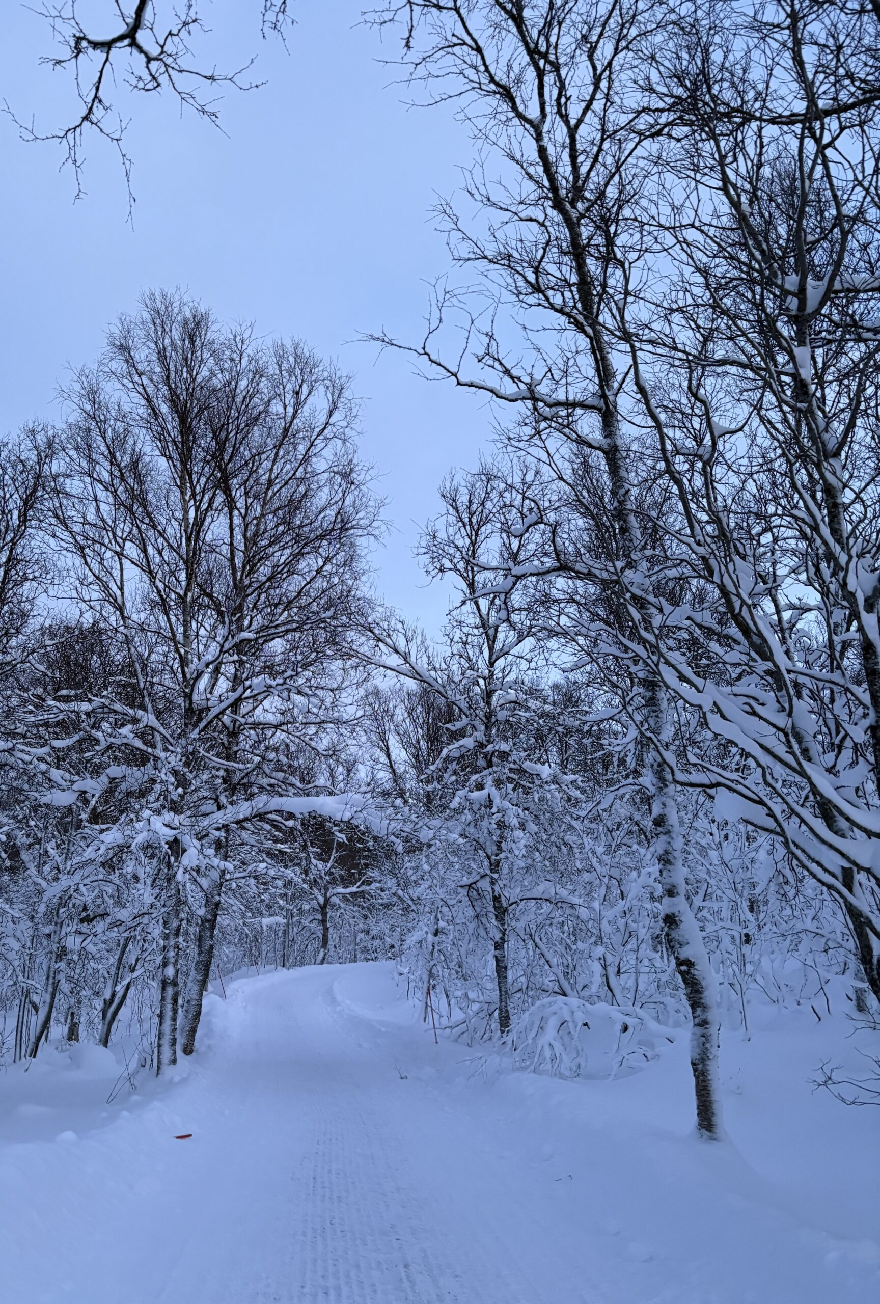 トロムソ郊外の宿で、朝起きたとき、結構明るいので、びっくりしました。一日中、太陽が昇らない極夜のタイミングで宿泊していたので、なんとなく一日中、真っ暗なのかと思っていたのです。午前中、とりわけ早い時間帯は、神秘的な光線に満ち溢れていました。映画や写真の世界で「マジックアワー」という言葉をよく使いますが、皆さんもご存じですよね?
