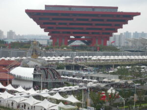 だが、2005年の愛・地球博は、準備段階から迷走し、これなら大阪万博と同じ会場を再現した方がよいのでは、とまで言われた。当初、メイン会場となる予定だった瀬戸市の海上の森は、自然保護の対象なるオオタカの巣が発見されたことで、変更が余儀なくされ、青少年公園になっている。その結果、従来のパビリオンとは違うタイプの会場を構想していた隈研吾、竹山実、團紀彦が外された。また青少年公園における外国館は、すべて箱型のユニットを使うモデュール式となり、建築としては、それに看板的なデザインを加えるくらいしかできなくなった。つまり、本来は万博の花形となる外国館のヴォリュームは、すべてがただの箱となり、何ユニットを利用するかというサイズの違いだけだった。