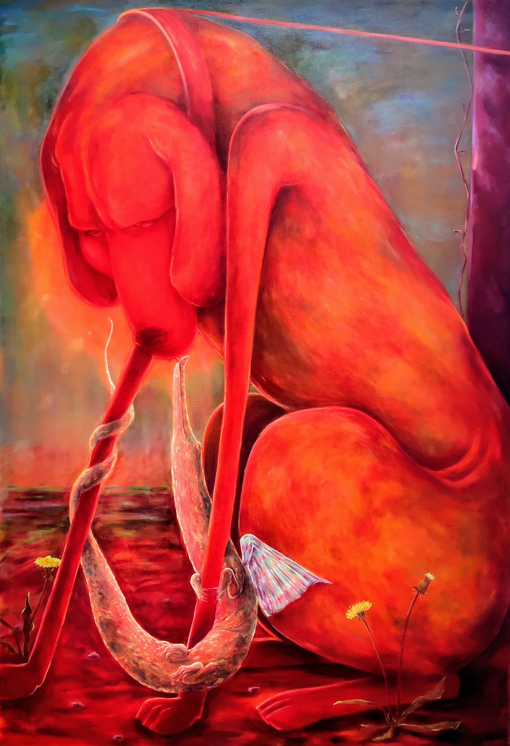 作品に登場する者・物はすべて、眠りの妖精に魅せられているような感じ。半分眠り、半分覚醒しているようなどこかふわふわした雰囲気が漂います。豊かな感受性に下支えされた内省・内観を通過させながら、描かれた対象と描く自分とが精神的に深くつながったような印象の油絵を中心に制作しています。言い換えれば、すべての作品が、ある種の“自画像”になっているのです。