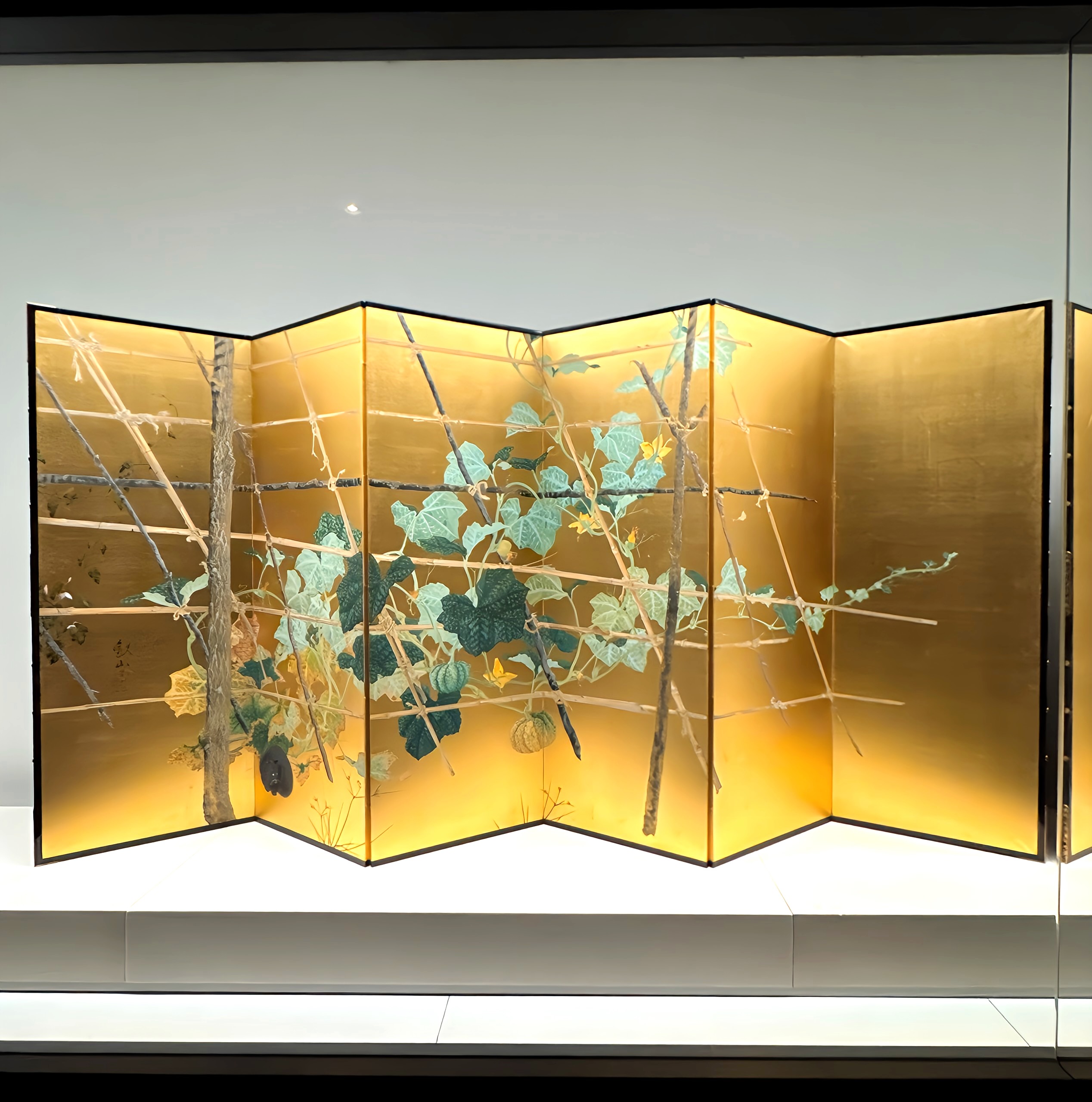下村観山《唐茄子畑》(部分、1910年頃、六曲一双、東京国立近代美術館蔵)