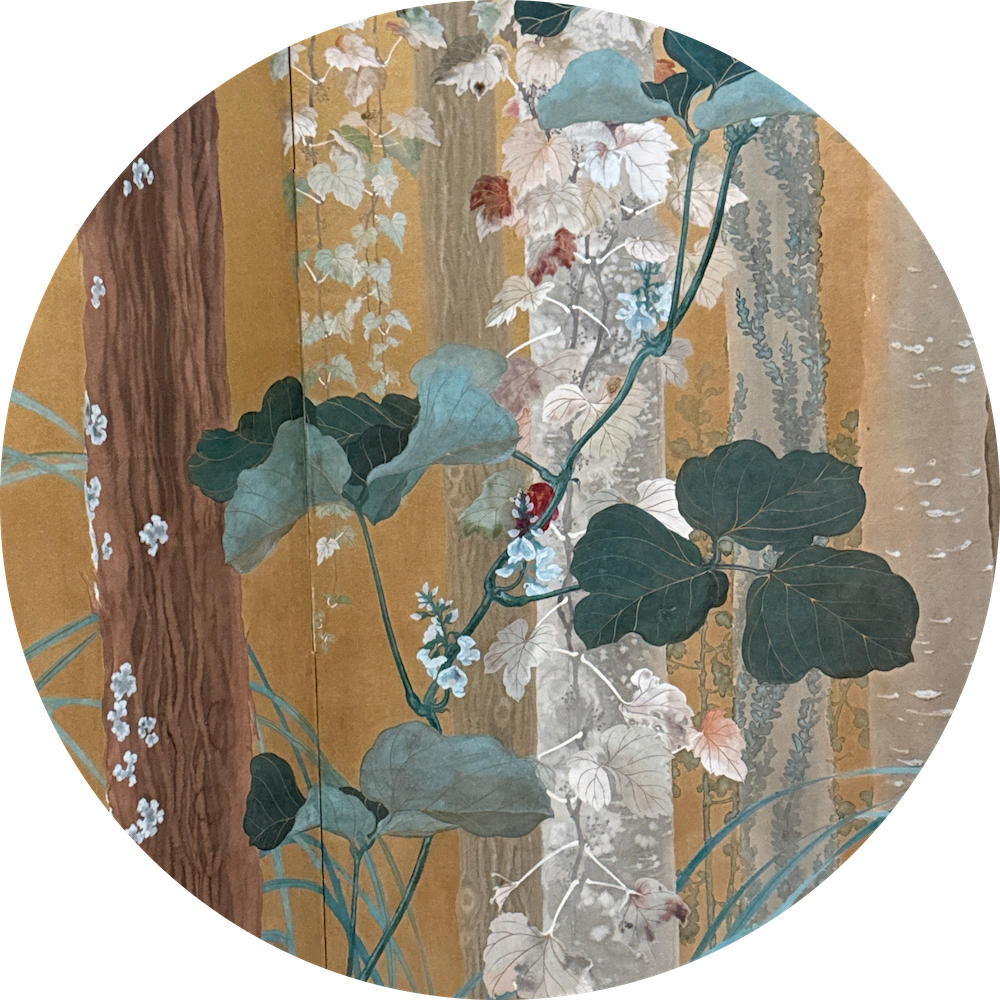 下村観山《木の間の秋》(部分、1907年、二曲一双、東京国立近代美術館蔵)