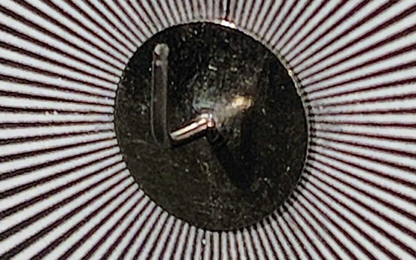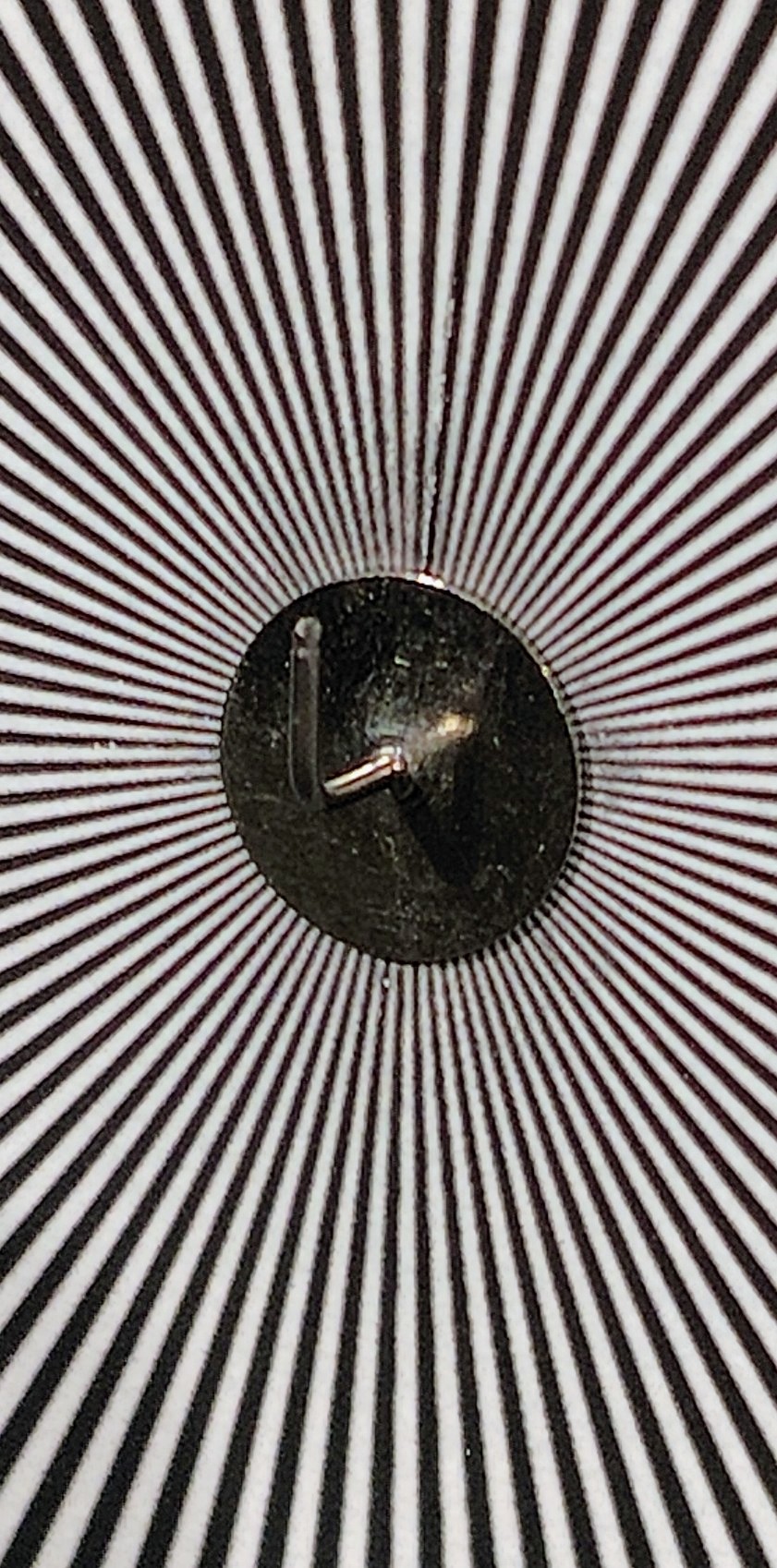 しかし、本作において、カメラをのぞいた人間にとって、見るという行為の距離を正確に測るためのチャートは、オップ・アート的な効果によって正しく直視できない状況になっているわけです。つまり、シムラブロスは、「見る」ことの困難さを極めて単純な道具立てで提示しているということです。