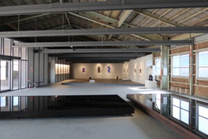 倉吉市では、2024年にオープンしたアート格納庫Mを訪れた。工業団地の割り箸メーカーの株式会社丸十が、空き倉庫とサイロをギャラリーに改造したものである。これはコレクターでもあるオーナーのアートで地域を豊かにしたいという強い思いから誕生した。設計は、TATERUが担当している。圧巻は、常設展示している原口典之の「Oil and Water」(2003)と超巨大なH鋼型の彫刻「Untitled FCS」(1990)だろう。前者については、オイル・プールのみは何度か見ていたが、水のプールとの組み合わせは初めてだった。また後者は、あまりに大きいため、いったん屋根を外して設営したらしい。なお、企画は郡田政之展を開催中だった。