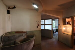 鳥取市内のホスピテイル・プロジェクトは、鳥取大学が中心となって、長く空き家だった3階建ての旧横田病院(1956年)を2012年から活用している。興味深いのは、建築がユニークな円形プランであること。かといって全体の規模が小さいため、パノプティコンのような監視の空間ではない。設計は、横田浩医院長自身によるものらしい。「ホスピタル(病院)」の語源である「ホスピテイル」はラテン語で「来客のための大きな館」という意味をもち、異人としてのアーティスト、あるいは地域住民を受け入れることをめざした。そしてアーティスト・イン・レジデンス、展覧会、パフォーマンス、イベント、アーカイブ事業などを。ほかに捨てられない本を集めた「すみおれ図書室」、アーティストによる人が集まる庭づくりプロジェクトなどを行う。