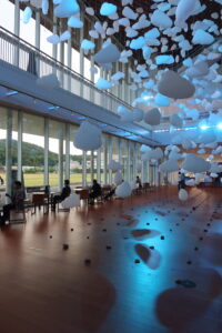 ちなみに、倉吉では、旧明倫小学校の円形校舎(1955年)の保存運動に成功し、2018年に開館した円形劇場くらよしフィギュアミュージアムもある。そして今年、倉吉パークスクエアの横に、待望の鳥取県立美術館が誕生した。槇文彦の設計ゆえに、デザインの強いクセは出さず、モダニズムに通じる正統派の空間である。同館は、ラーニングやワークショップに力を入れており、今後、地域と連携していくだろう。ちょうど吹抜けでは、髙橋匡太さんによる光のインスタレーション「雲の故郷へ」を開催中だった。