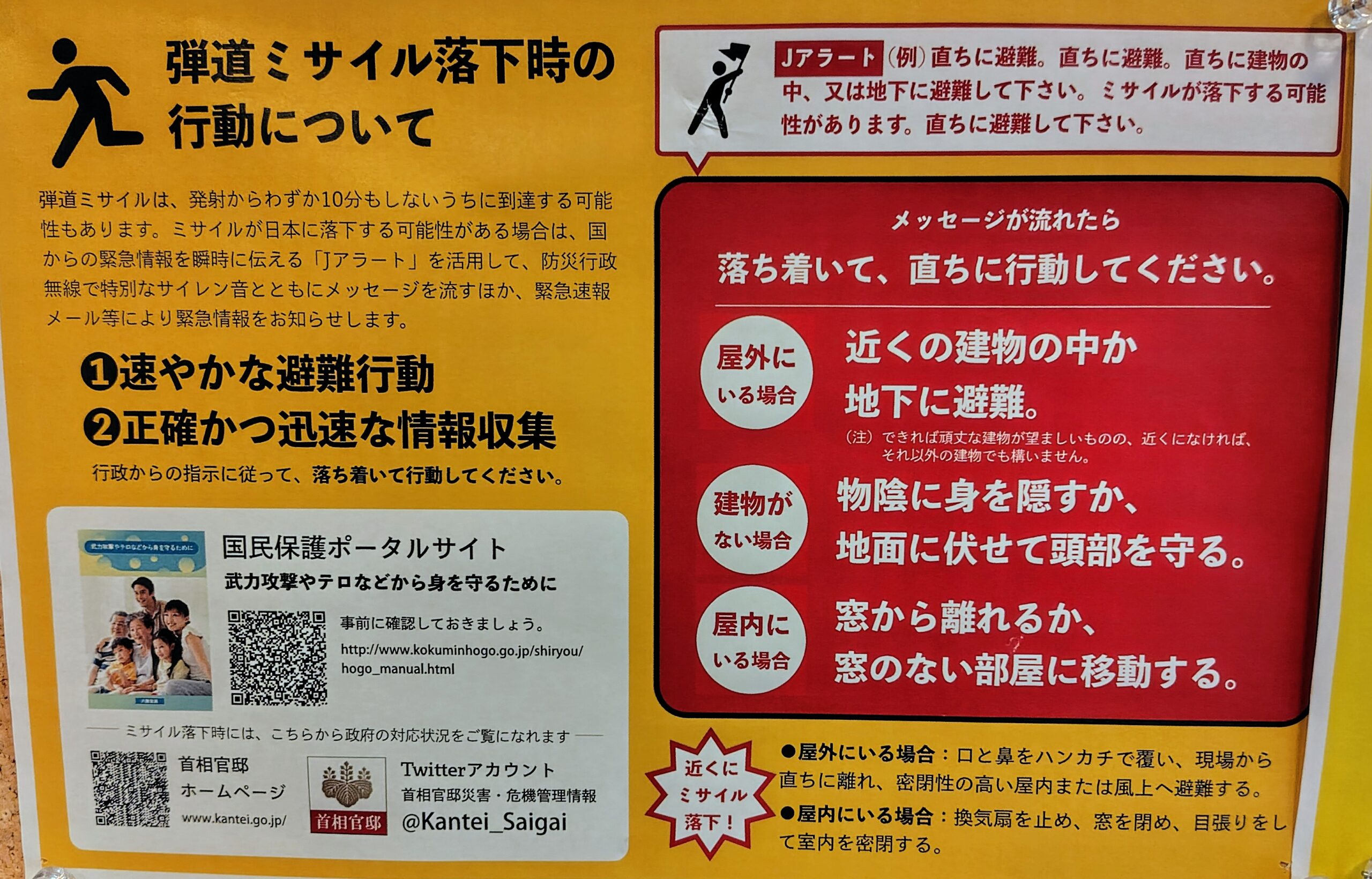 もう1枚、掲示がありました。表題は「弾道ミサイル落下時の行動について」です。