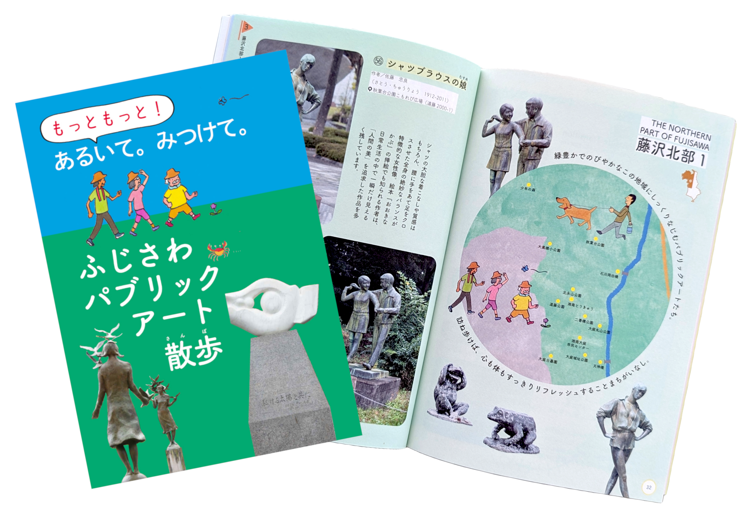 神奈川県藤沢市にある藤沢市アートスペースが、2020年、2025年と2回にわたって、実に素敵な冊子を作成しました。2020年は「あるいて。みつけて。ふじさわパブリックアート散歩」というタイトル。2025年は「もっともっと!あるいて。みつけて。ふじさわアートパブリックアート散歩」と言います。どちらもA5判56ページと持ち運びしやすいサイズです。2020年の方は、すでに配布終了していますが、2025年の方は現在も何と無料で絶賛配布中です。