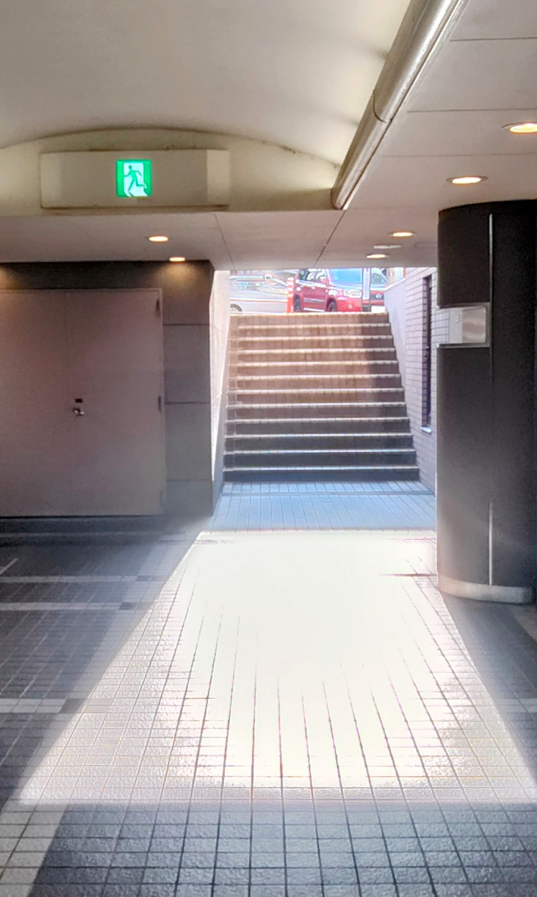 遊行寺から奥田三角公園に向かう途中、半地下の通路の向こうから強烈な西日が差していた。映画館のスクリーンのようだった