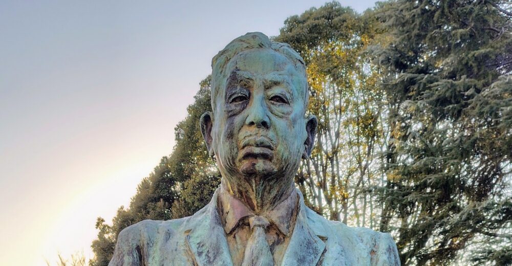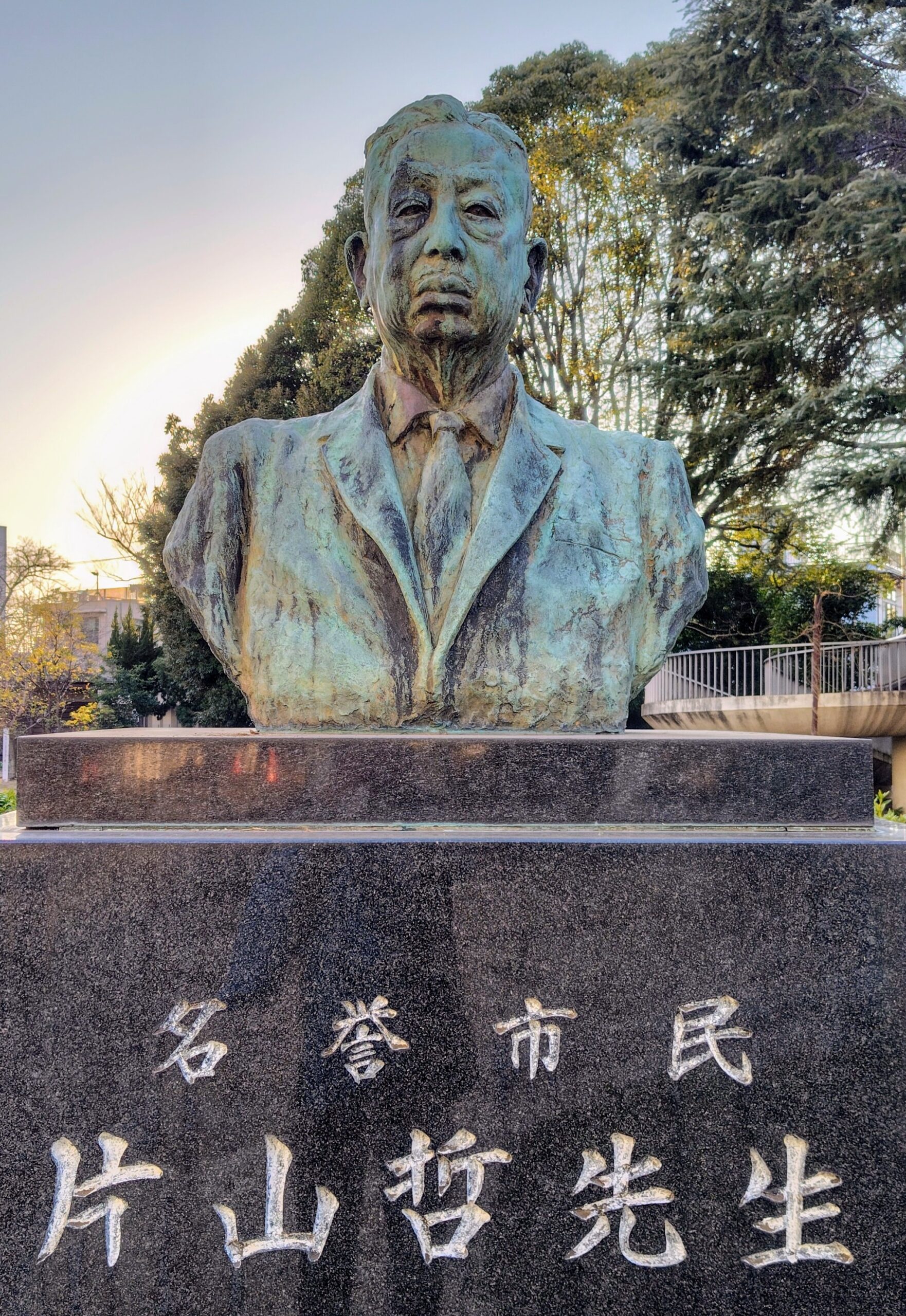 この会館の前には、若き頃、池袋モンパルナスで制作した後、藤沢に移住した菅沼五郎(1905~1999年)の「名誉市民 片山哲先生」(ブロンズ)も設置されています。文人宰相と呼ばれた片山哲(1887~1978年)は1947年に内閣総理大臣を務めています。