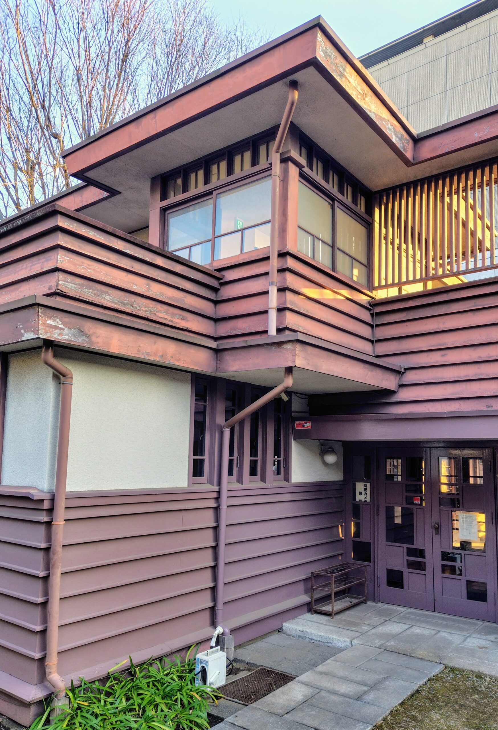 市民会館をもう少し奥の方に進むと右手に「旧近藤邸」があります。フランク・ロイド・ライト(1867~1959年)の弟子・遠藤新(1889~1951年)による有機的な建築です。