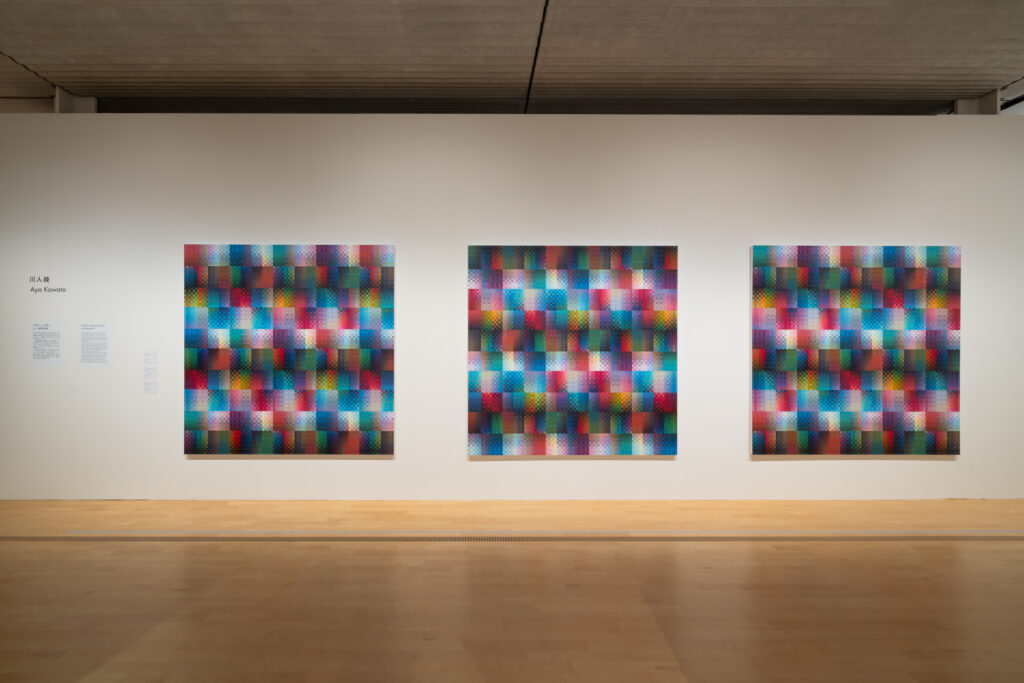 第一部「光と色の実験」では,19 世紀の芸術の本場であるヨーロッパ,20 世紀半ば以降の芸術の本場であるアメリカで活躍したアーティストが主であったが,第二部「色彩の現在」では,多くの若い日本人作家が取り上げられていた.名前を挙げると,坂本夏子,流麻二果,門田光雅,川人綾,山本太郎,山田航平,伊藤秀人,中田真裕,小泉智貴,山口歴らである.1970 年代以降に生まれた作家たちであり,ほとんどが日本を拠点に活動している.