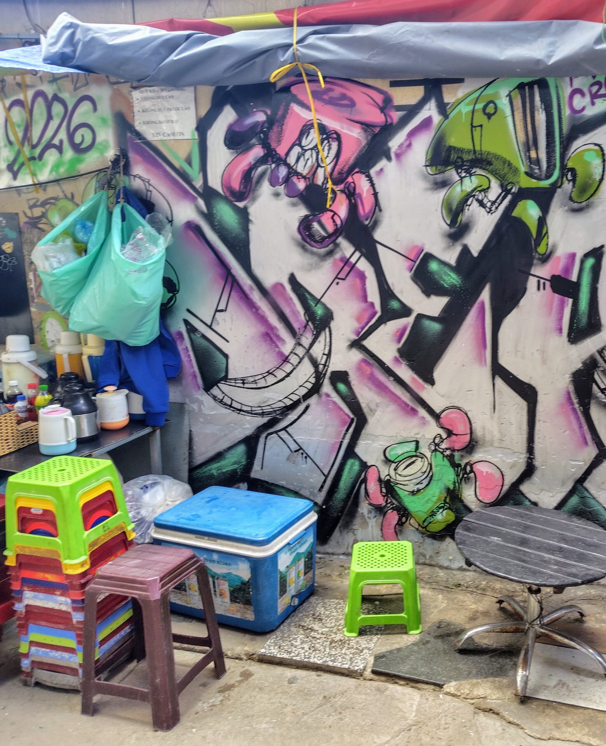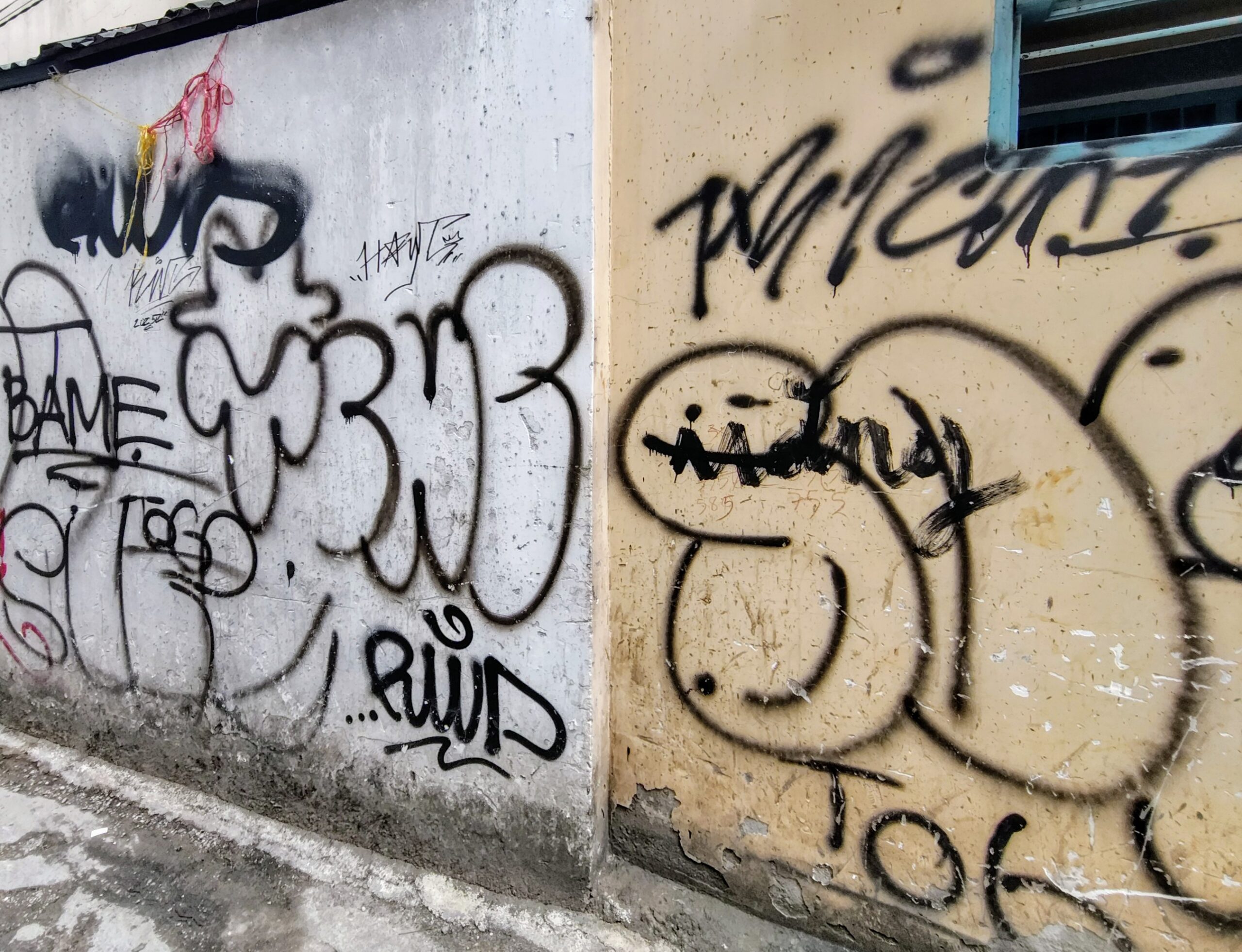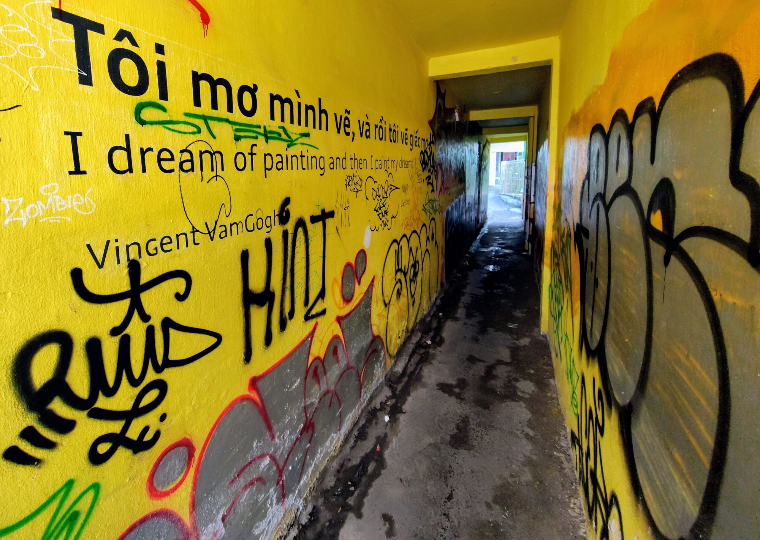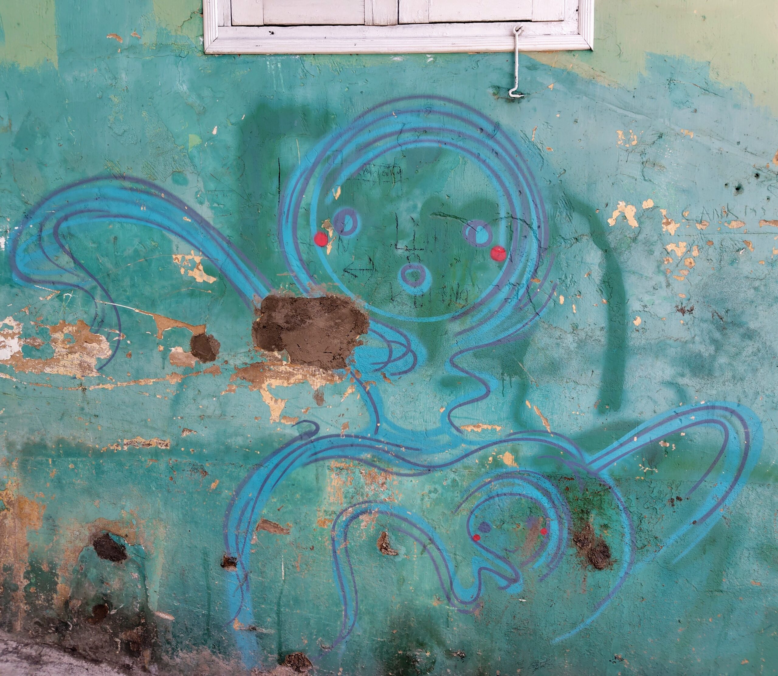 ところが、面白いのはここからです。優等生の作品は、大通りから比較的、距離的に近い場所に描かれていますが、奥に入れば入るほど、非公式の作品が多くなってくるのです。狭い路地で、人が一人通れるくらいの道幅の場所もあります。また、建物と建物の隙間のような空間に壁画が描かれております。こちらの方が、松田聖子的なる作品よりもはるかに面白いのです。