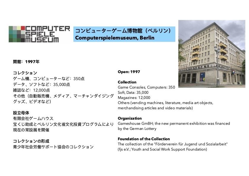 北ドイツを中心に活動する筆者が2023年8月から2025年11月に訪れたゲーム博物館、ゲームコレクションなどヨーロッパの6施設の報告となる。各館訪問後、ウェブ上での情報収集と一部インタビューを含めて、記された情報は2025年3月10日時点であることを了承いただきたい。