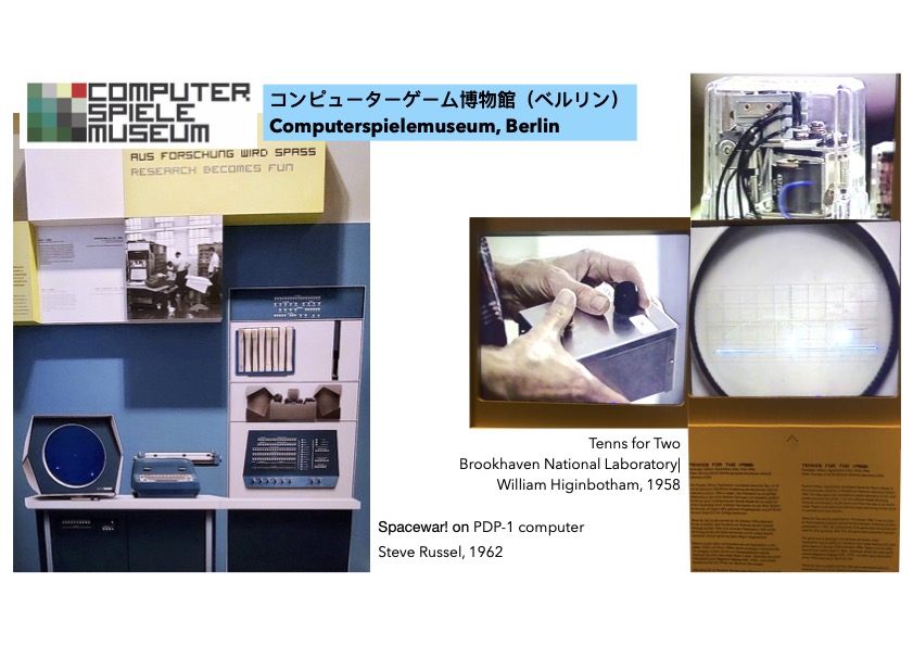 コンピューターゲーム史上最初のゲームとして名高い、Blookhaven national lab のTennis for 2と、PDP-1 Computer, Spacewar! の展示で “Research becomes fun” (研究が楽しさになる)と題して、科学研究所内でのコンピューターゲームの誕生を解説している。