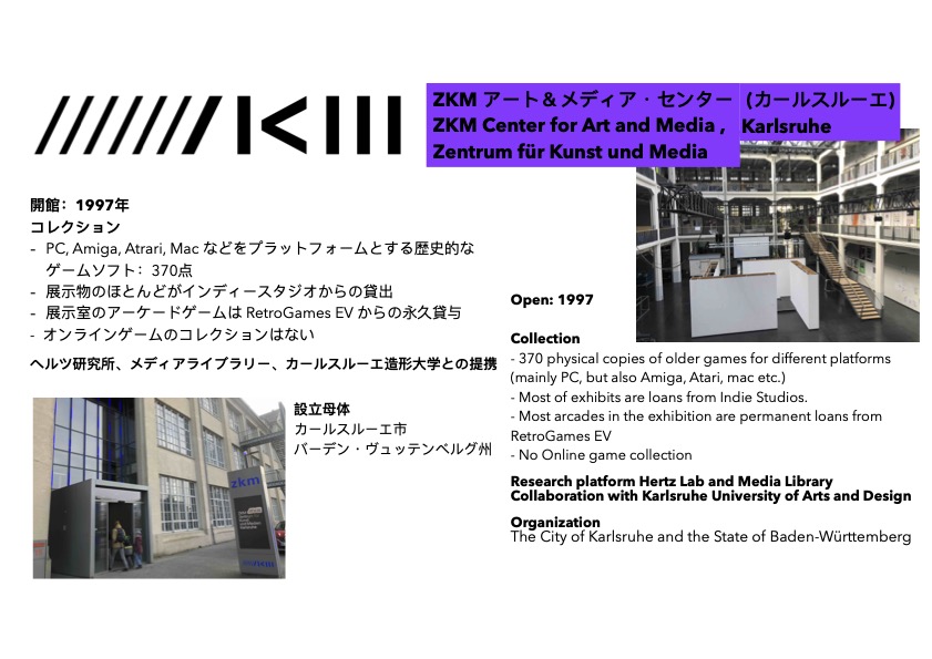ドイツ、カールスルーエにあるZKMアート·メディアセンターは、ゲーム博物館ではないが、ゲームの展示をしているので調査対象とした。