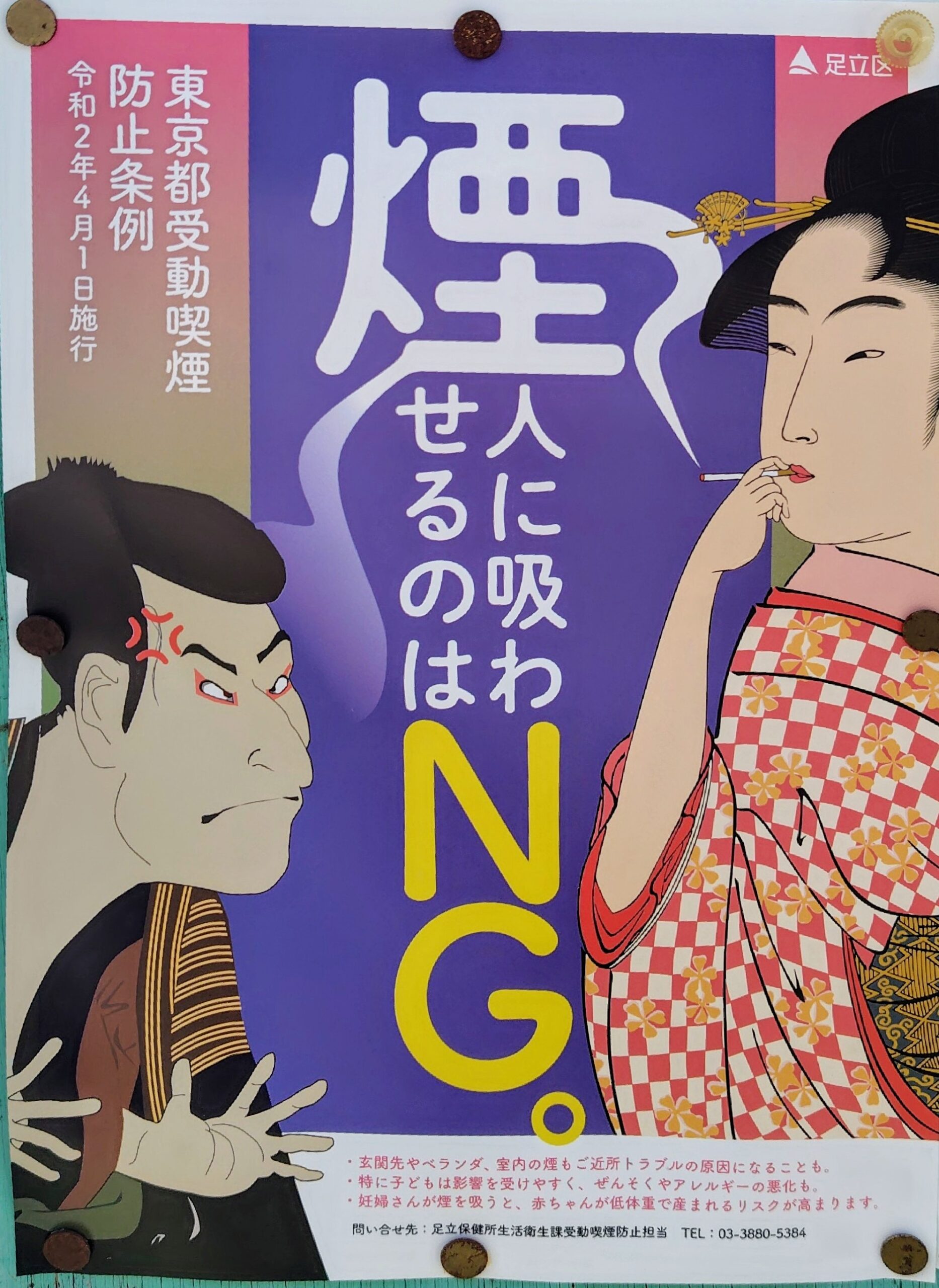 東京都が2020年4月1日に受動喫煙防止条例を施行した際、足立区が作成したポスターをご紹介しましょう。