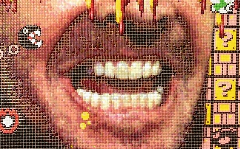 しかも、さらに面白いのは、大首絵を否定するような作業に何の底意も含意も感じられない点です。俯瞰的な“メタ視点”へと位相をすらず「メタる」という発想に、「やたら(過剰さ)」を重ねた造語が展示名の由来ということなのですが、やたらとゲームのイメージで埋め尽くし、メタ化した挙句、「ネオ大首絵」が誕生しているように見えたのです。顔面の一部を隠されている方が、かえってリアルさを感じるという逆転現象さえ発生しています。現代のアイコンは、オリジナルと毀損・改変を受けたフェイクとの間に何の差異もないと森が主張しているようです。